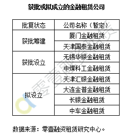 此外,还有2家金融租赁公司获批筹建,2家金融租赁公司获批设立,4家金融租赁公司拟设立。