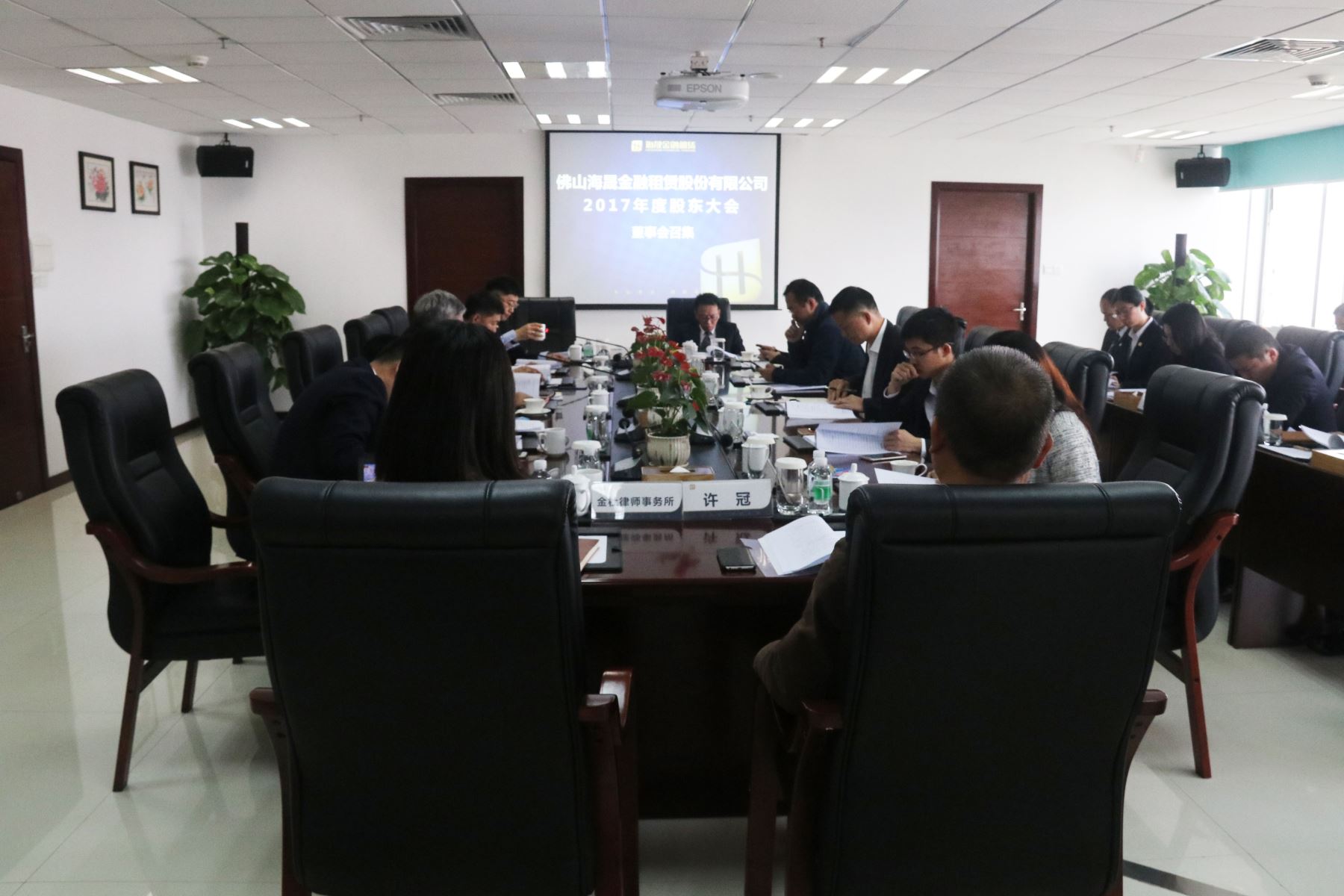 2月28日上午,佛山海晟金融租赁股份有限公(下“简称”)司2017年度股东大会在农商银行大厦27楼会议室成功举行。此次股东大会由董事长李宜心先生主持,公司股东单位广东南海农村商业银行股份有限公司、广东省广晟资产经营有限公司、广东伊之密精密机械股份有限公司、广州御银科技股份有限公司、佛山市金融投资控股有限公司、佛山市南海承业投资开发管理有限公司、佛山市南海中南机械有限公司的代表,以及公司监事会监事、高管、金杜律师事务所见证律师等出席了本次会议。