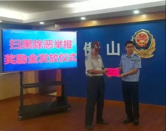 《佛山市群众举报黑恶势力犯罪奖励办法》出台后,市扫黑除恶办、市公安局扫黑办接收到大量的群众举报线索。全市各级公安机关根据其中部分线索,破获“东平一号”、“4·10”等重特大案件,依法打掉了一批涉黑涉恶违法犯罪团伙。为奖励举报有功人员,进一步在全社会营造出对黑恶势力人人喊打的良好氛围,8月31日,市扫黑除恶办、市公安局扫黑办向11名举报有功的群众发奖励金,总奖金达20万元。